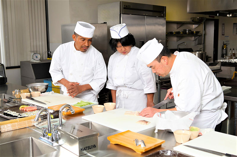 日本人の現役シェフが約1ヶ月間で基本的な技術や日本食の歴史・文化・哲学も教える。参加者の多くは日本食を作ったことがない生徒だが、プロのシェフへの入口として支持されている。さらに学びたい人には、より高度にアレンジされた和食のメニューを学ぶなどのコースも用意している。