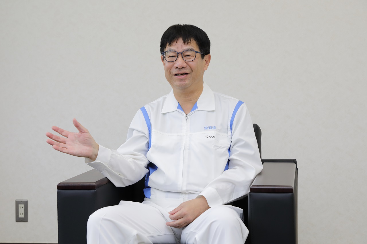 そう話すのは、1991年に入社して以来30年を超えて宝酒造のものづくりに携わっている、生産管理部製造課専門部長の佐々木秀男。島原と松戸の2工場で研鑽を積んだ蒸留のエキスパートだ。
