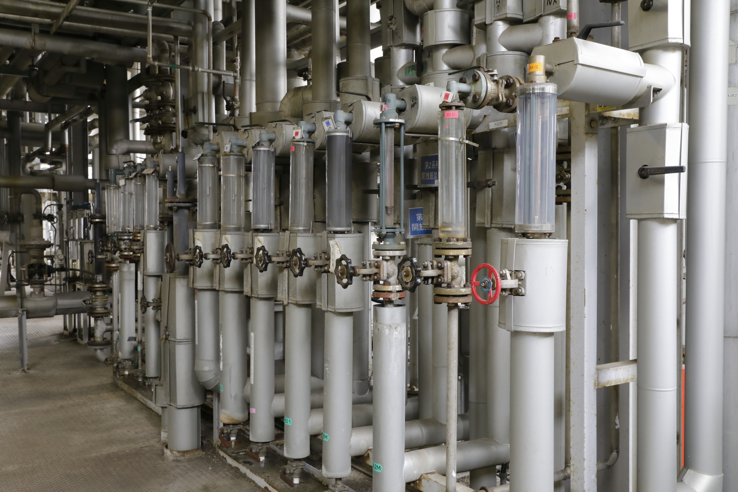管がひしめきあう蒸留設備の内部