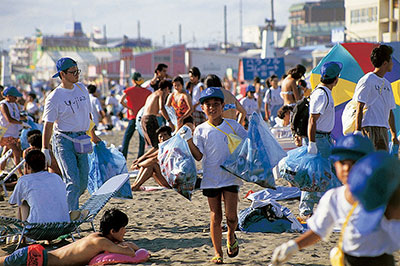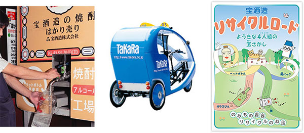 「私は1998年入社なのですが、その頃から宝酒造は環境への意識が高い企業だと感じていました。地域の海岸から空き缶をなくそうという想いで取り組んだ清掃活動『TaKaRaクリーンcanウォーキング』(1991~2002年)などにもたくさんの社員たちと一緒に参加しました。みんなでお揃いのTシャツを着て地域を清掃するのですが、とてもやりがいを感じたことを覚えています。また“焼酎のはかり売り”や環境性と利便性を同時に高めた“パウチパック”の開発・採用、さらにはCO2削減に向けた『ベロタクシー』への協賛(2002~2015年)や、環境教育教材『リサイクルロード』の発刊など、多様な取り組みを積み重ねています」(黒川)