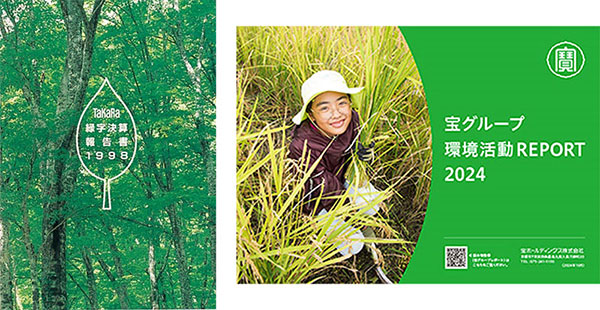 現在は『環境活動REPORT』(右)「今の業務に携わり、これまで先輩方が重ねてきた環境・社会貢献活動が今のサステナビリティ活動に繋がっていることを体感しています。時代や世の中のニーズに合わせて取り組みを広げ進化させていくことも大切ですが、特に『タカラ・ハーモニストファンド』など、地道な活動をコツコツと継続させていくことが重要だと思っています。その意味で、サステナビリティ推進室としては、新たな取り組みに加え継続させていくための体制づくりも責務だと思っています。宝グループは世界各地で事業を展開していますので、これからもいろいろな場所で現場の仲間たちと協力しながら、事業活動を通じた社会課題の解決に貢献していきたいと考えています」(黒川)