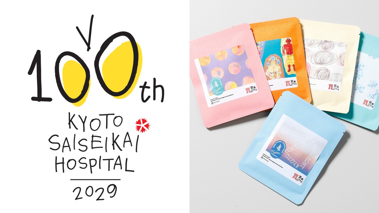 (左)フォント事例:京都済生会病院様100周年ロゴ (右)パターン・フォント事例:コーヒーパッケージ